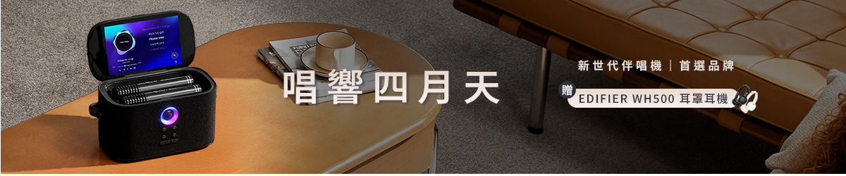 4/1-4/30 入手任一款伴唱機,不只讓你隨處都能開個人演唱會,還要送你高品質耳罩耳機,讓你練唱更專業、聽歌更沈浸。